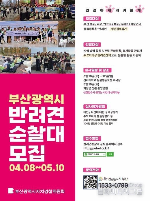 시민행정신문 이존영 기자 | 부산광역시자치경찰위원회는 올해 '부산 반려견 순찰대'를 부산 전 자치구로 확대 운영한다고 밝혔다.