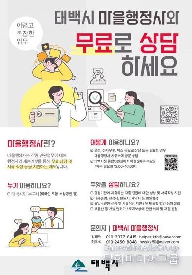 태백시 관계자는 “마을행정사 운영으로 시민들 누구나 손쉽게 행정 업무를 볼 수 있게 되길 기대하며, 취약계층 지원을 통해 민원 사각지대를 해소해 나가고자 한다”라며 “앞으로도 주민 편의를 위한 제도들을 지속적으로 마련해 나가고 지원을 아끼지 않겠다”라고 말했다