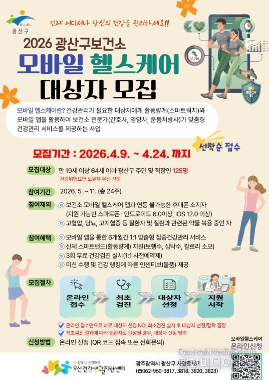 시민행정신문 기자 | 광주 광산구는 정보통신기술(ICT)을 활용해 주민들의 건강을 챙기는 ‘2026년 모바일 헬스케어’ 사업을 본격적으로 운영한다고 밝혔다.