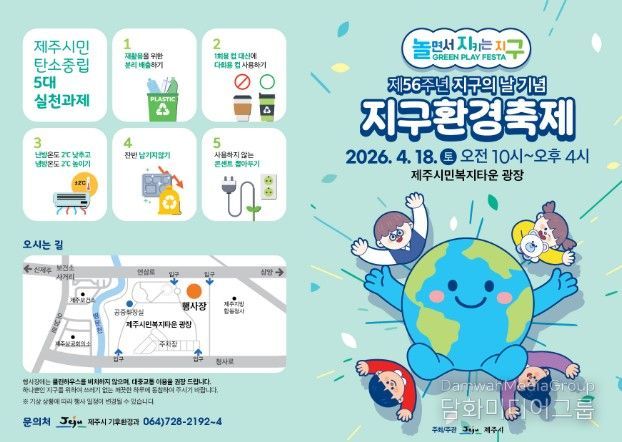 시민행정신문 기자 | 제주시는 제56주년 지구의 날을 기념해 4월 18일 제주시민복지타운 광장에서 시민들이 즐겁게 참여하고 소통할 수 있는 ‘2026 지구환경축제’를 개최한다.