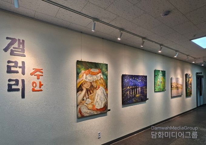 도서관 지하 1층에 있는 ‘갤러리 주안’은 도서관을 방문한 이용자들이 도서관에서 책을 읽고 명화를 감상하며 정서적인 풍요로움을 느낄 수 있도록 기획한 공간이다. 오귀스트 르느와르의 ‘책읽는 소녀’를 비롯한 유명한 미술가들의 대표 명화를 전시했다.