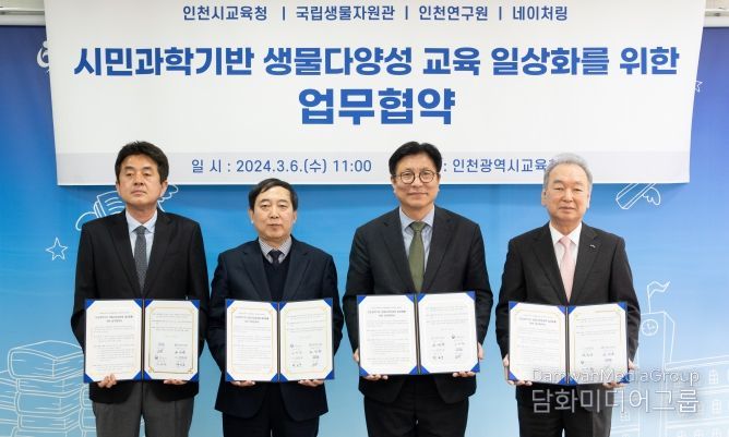 시민행정신문 김지은 기자 | 인천광역시교육청은 기후 위기 공동 대응을 위해 국립생물자원관, 인천연구원, 주식회사 네이처링과 생물다양성교육 일상화를 위한 업무협약을 6일 체결했다.