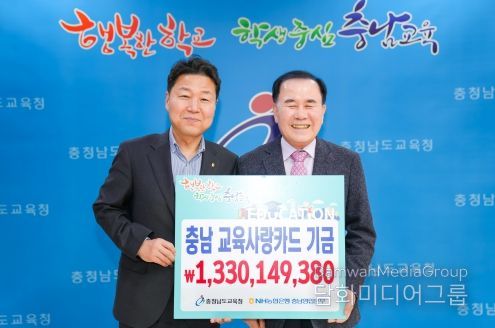 시민행정신문 김지은 기자 | 충남교육청은 3월 8일 엔에이치(NH)농협은행 충남본부로부터 지난해 충남교육사랑카드 사용으로 조성된 기금 13억 3,014만 원(전년도: 12억 2,694만 원)을 전달받았다.