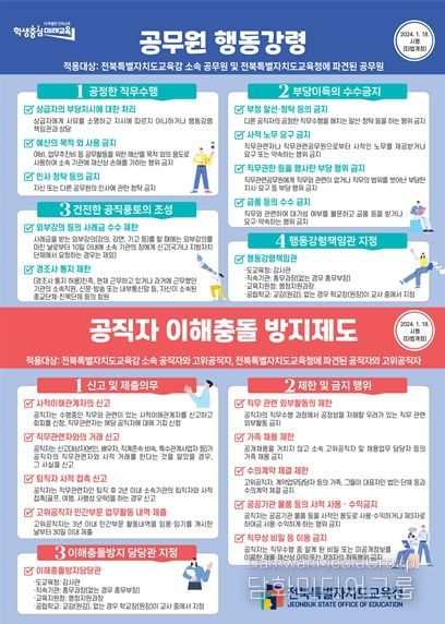 시민행정신문 김지은 기자 | 전북특별자치도교육청이 공무원 행동강령 및 공직자 이해충돌 방지제도 홍보 포스터를 제작했다.