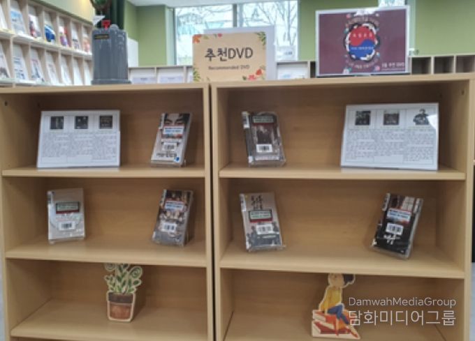 추천 DVD 코너는 지역주민에게 다양한 서비스를 제공하고 도서관 이용 만족도를 높이기 위해 마련했다. 각 달에 어울리는 주제를 선정하고 적합한 DVD를 엄선해 전시하며, 전시된 DVD는 도서관 1층 디지털 자료실에서 관내 시청할 수 있다.