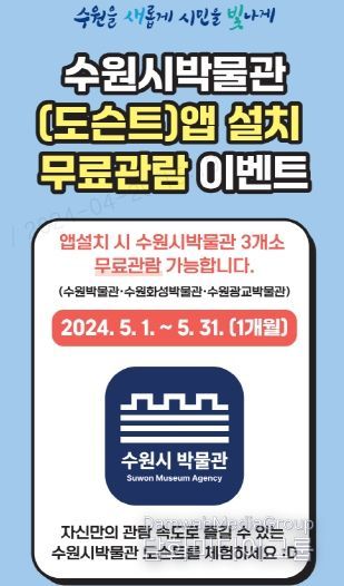 시민행정신문 기자 | 수원시박물관이 가정의 달을 맞아 수원시박물관 앱을 설치한 시민에게 5월 1일부터 31일까지 수원·수원화성·수원광교 박물관을 무료로 개방한다.