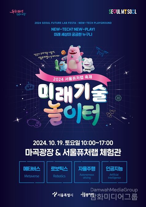 서울시는 시민 누구나 AI, 로봇 등 각종 미래기술을 직접 체험할 수 있는 행사인 ‘2024 서울퓨처랩 축제 : 미래기술 놀이터’를 19일 오전 10~17시, 강서구 마곡광장에서 개최한다고 밝혔다.