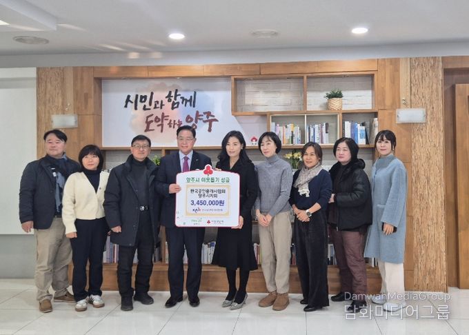 기탁된 성금은 한국공인중개사협회 경기북부지부 양주시지회 회원들이 연말연시를 맞아 외롭고 힘든 이웃들을 위해 작은 힘이 되고자 마련한 것으로 관내 홀몸 어르신, 장애인 등 관내 복지 사각지대에 계층을 돕기 위해 사용될 예정이다.