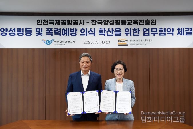 시민행정신문 강갑수 기자 | 인천국제공항공사는 14일 청사 회의실에서 양성평등교육진흥원과 ‘양성평등 및 폭력예방 의식 확산을 위한 업무협약(MOU)’을 체결했다고 15일 밝혔다.