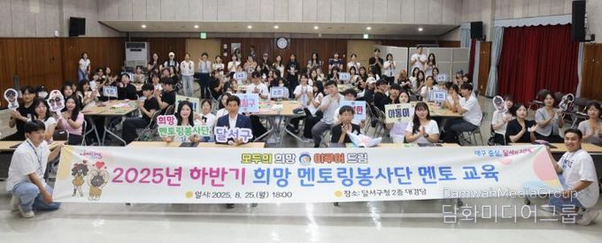 시민행정신문 강갑수 기자 | 대구 달서구는 지난 25일 오후 6시 구청 대강당에서 신규 멘토 100여 명을 대상으로 2025년 하반기 ‘희망 멘토링봉사단 멘토 교육’을 실시했다.