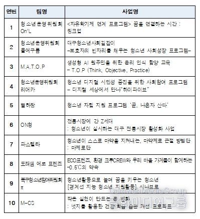 대구시는 지난 4월부터 예선에 참여한 28개 팀(204명)을 대상으로 참여예산 교육과 컨설팅을 지원했으며, 7월 심사를 거쳐 본선에 오를 10개 팀을 선발했다.