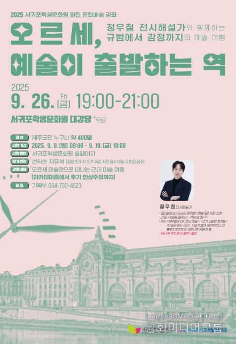 강정림 원장은 “이번 강좌가 지역사회 교육기관 간 협력을 강화하고 학생과 보호자, 교직원, 지역 주민 모두가 함께하는 고품격 문화예술 체험의 장이 되길 바란다”며 “많은 도민이 부담 없이 참여해 오르세 미술관이 품은 19세기 예술의 흐름과 감동을 함께 느껴보길 기대한다”고 말했다.