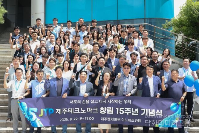 제주TP는 지난달 29일 제주벤처마루 이노비즈카페에서 현장근무자를 제외하고 지영흔 원장과 130여 명의 직원이 참여한 가운데 ‘서로의 손을 잡고, 다시 시작하는 우리’를 주제로 창립 15주년 기념식을 개최했다.