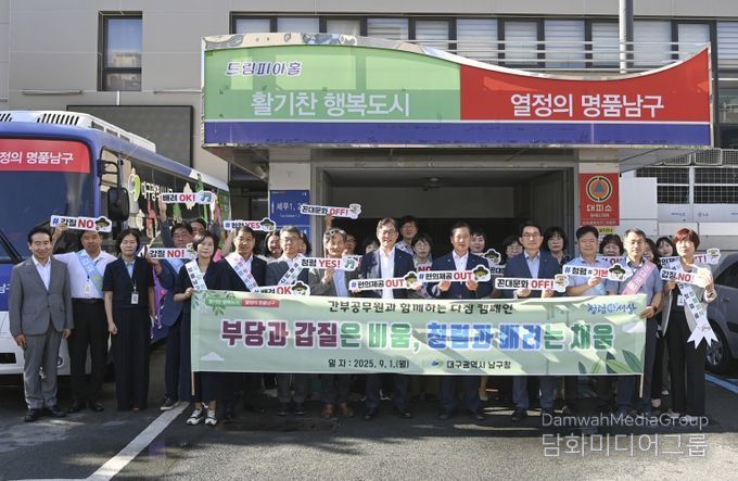 시민행정신문 강갑수 기자 | 대구 남구는 지난 9월 1일, 과장급 이상 간부공무원이 함께하는 "갑질 근절 다짐 캠페인"을 실시했다.