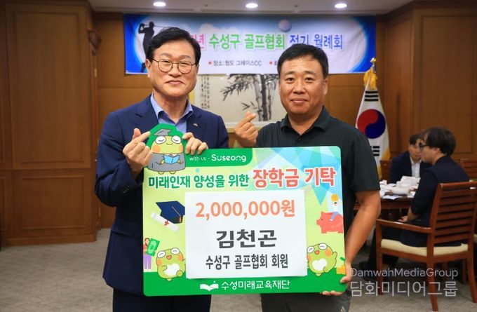 시민행정신문 강갑수 기자 | 대구 수성구 골프협회 회원 김천곤 씨는 지난 1일 열린 수성구 골프협회 월례회에서 미래 인재 육성과 지역 교육 경쟁력 강화를 위해 장학금 200만 원을 수성미래교육재단(이사장 김대권)에 기탁했다.
