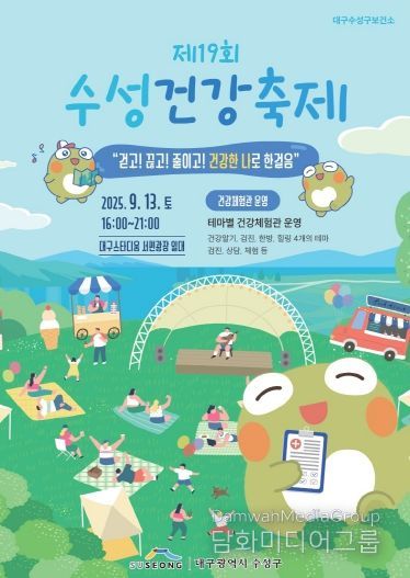 시민행정신문 기자 | 대구 수성구에서 주최하는 '제19회 수성건강축제'가 오는 13일 오후 4시부터 9시까지 대구스타디움 서편광장 일대에서 개최된다.
