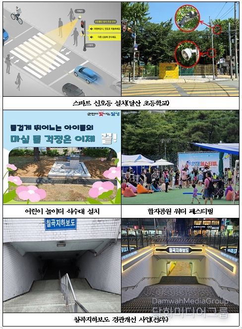 ▲어린이보호구역 교통사고 예방을 위한 스마트 신호등 설치 ▲안전하고 쾌적한 보행환경 제공을 위한 칠곡지하보도 경관개선 사업 등 안전사고 예방 및 시민들의 삶의 질 향상을 위한 생활밀착형 사업들이 우수사업으로 선정됐다.