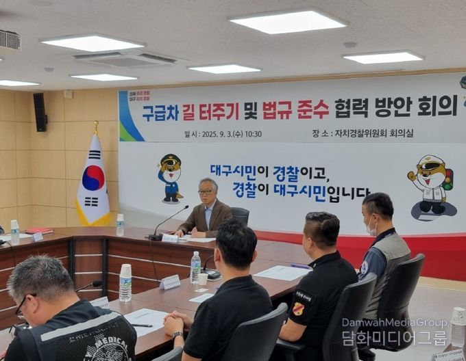 시민행정신문 이존영 기자 | 대구광역시 자치경찰위원회는 9월 3일, 대구시청 산격청사에서 대구시 보건의료정책과, 대구경찰청, 11개 경찰서, 7개 민간이송업체와 함께 ‘긴급구급차 길 터주기’ 및 비긴급 구급차 법규위반 예방을 위한 간담회를 개최했다.