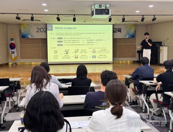 이날 교육에서는 부서·동 행정복지센터·도서관 등 근무지 담당자 30여 명이 참석했으며, 교육은 복무지도 역량 강화를 위해 복무 관리 업무 전반, 복무 관리 규정 주요 개정 사항, 사회복무포털 사용법과 현장 애로사항 해결 방안을 중심으로 진행됐다.