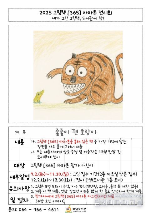시민행정신문 기자 | 제주도교육청 제남도서관은 오는 11월 30일까지 ‘2025 그림책 365 마라톤–내가 그린 그림책, 도서관에 착!’ 전시회 참가 작품 신청을 받는다.