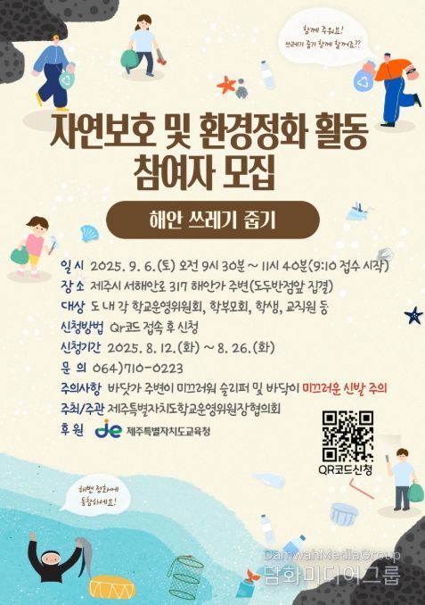 시민행정신문 기자 | 제주특별자치도학교운영위원장협의회는 6일 오전 9시 30분 제주시 도두동 해안가 일대에서 학교운영위원회와 학부모회 회원 100여 명이 참여하는 ‘2025학년도 자연보호 및 환경정화 활동’을 실시한다.