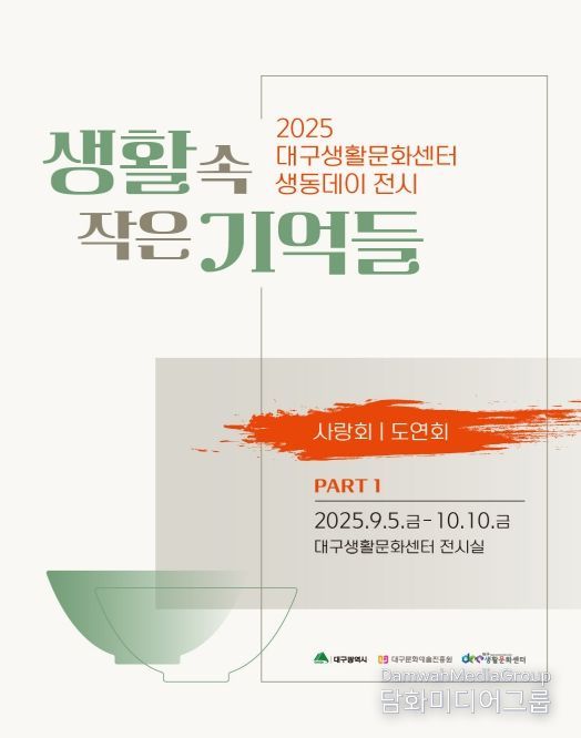 시민행정신문 강갑수 기자 | (재)대구문화예술진흥원 대구생활문화센터는 2025년 두 번째 생동데이 전시 “생활 속 작은 기억들”을 개최한다. 이번 전시는 9월 5일부터 10월 10일까지 대구생활문화센터 전시실에서 열린다.