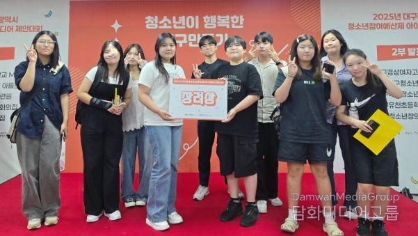 시민행정신문 강갑수 기자 | 대구 북구청은 지난 8월 30일 토요일, 대구광역시 행복진흥사회서비스원에서 개최된 『2025년 대구광역시 청소년참여예산제 아이디어 제안대회』에서 북구청소년참여위원회 ‘π(파이)’와 북구청소년운영위원회 ‘오늘’이 각각 장려상을 수상했다고 밝혔다.