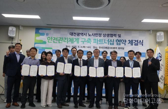시민행정신문 강갑수 기자 | 대전시 노사민정협의회(위원장 이장우 대전시장)는 9월 4일 한국조폐공사 ID본부 회의실에서 '산업재해 예방 안전관리체계 구축 파트너십 공동협약'을 체결했다.
