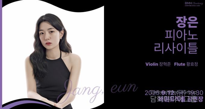 시민행정신문 기자 | 서구 비원뮤직홀은 오는 9월 12일 오후 7시 30분, BMH 레지던시 리사이틀 시리즈 ‘장은 피아노 리사이틀’을 개최한다.