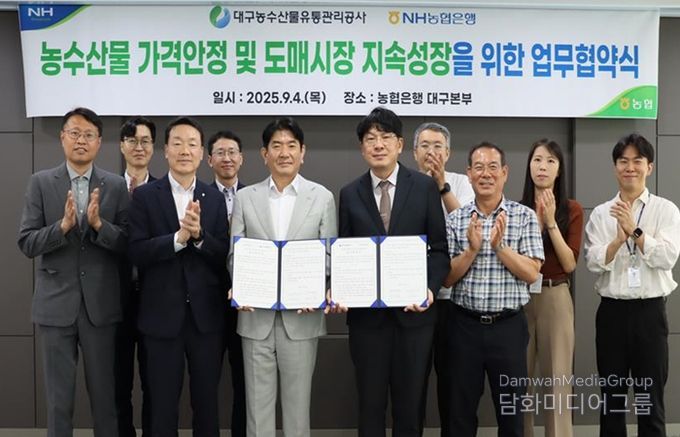 시민행정신문 강갑수 기자 | 대구농수산물유통관리공사는 지난 4일 NH농협은행 대구본부와 농수산물 가격안정 및 도매시장 지속 성장을 위한 업무협약(MOU)을 체결했다.
