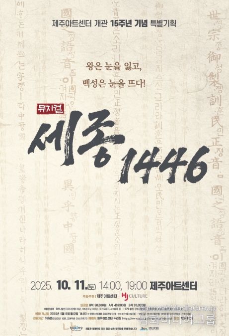 시민행정신문 기자 | 제주아트센터는 개관 15주년을 맞아 대형 창작 뮤지컬 ‘세종, 1446’을 10월 11일 오후 2시와 7시 특별기획 공연으로 선보인다.