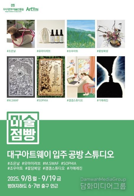 이번 6차 미술점빵 운영은 2025년도 입주예술인(단체) 공모를 통해 선정돼 현재 대구아트웨이 내 입주 중인 8개 공방 스튜디오와 함께 한다.