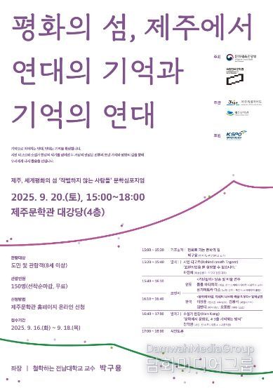 시민행정신문 기자 | 제주문학관이 19일부터 25일까지 ‘제주, 세계평화의 섬 – 작별하지 않는 사람들’ 문학행사를 개최한다. 2025 대한민국 문학축제와 연계한 이번 행사는 제주가 ‘세계평화의 섬’으로 지정된 지 20주년을 맞아 기획됐다.