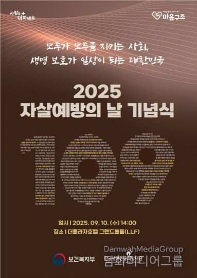 시민행정신문 이존영 기자 | 보건복지부와 한국생명존중희망재단(이사장 황태연)은 자살 예방의 날을 맞아 9월 10일 오후 2시에 서울 더플라자호텔 그랜드 볼룸에서'2025년 자살예방의 날 기념식'을 개최했다.