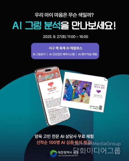 시민행정신문 강갑수 기자 | 대전 서구는 오는 9월 27일 갈마문화공원(월평도서관 옆)에서 열리는 ‘서구 책 축제’ 기간 동안 AI 체험 부스를 운영한다고 12일 밝혔다.