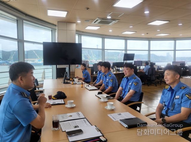시민행정신문 이존영 기자 | 울산해양경찰서는 12일 태풍내습기 울산항 내 선박 충돌, 좌초 등 각종 해양사고 예방을 위해 울산항 해상교통관제센터(VTS)를 방문했다.