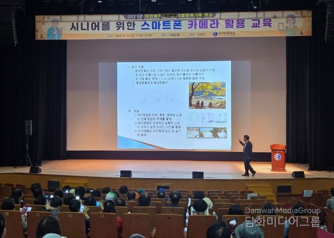 시민행정신문 기자 | 대전평생학습관은 9월 12일 어울림홀에서 대전늘푸른학교 학습자를 대상으로 ‘시니어를 위한 스마트폰 카메라 활용 교육’을 주제로 특별 강연을 개최했다.