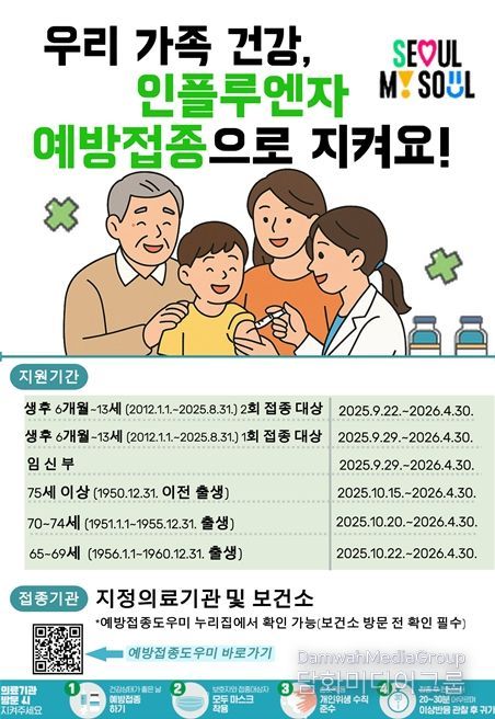 송은철 서울시 감염병관리과장은, “인플루엔자 예방접종은 시민 모두의 건강을 지키는 가장 확실한 예방법”이라며 “서울시는 시민이 체감할 수 있는 다양한 홍보를 추진하고, 안전한 접종환경을 조성해 누구도 소외되지 않는 건강한 서울을 만들기 위해 최선을 다하겠다”고 밝혔다.