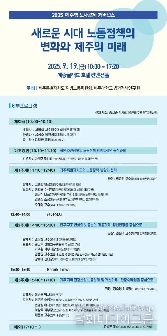 각 세션에서는 학계와 현장 전문가들이 참여해 제주 노동시장의 구조적 문제점과 혁신적 해결방안을 다각도로 논의한다.