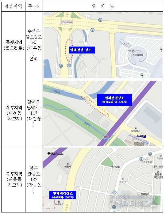 대구시는 점검 일정과 내용을 업체에 사전 통보해 자율 시정을 유도하고, 미수검·부적격 차량에 대해서는 운행정지 등 행정처분을 통해 위험 요소를 사전에 차단할 방침이다.