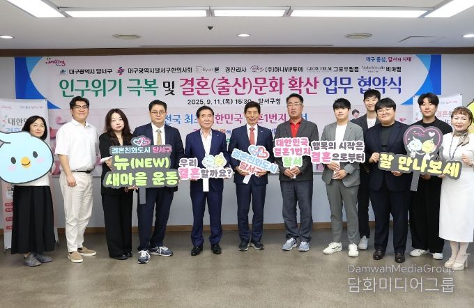 시민행정신문 강갑수 기자 | 대구 달서구는 지난 11일 구청에서 대구광역시 달서구한의사회를 비롯한 6개 민간기관·단체와 결혼친화 문화 확산과 저출생 대응을 위한 업무협약을 체결했다.