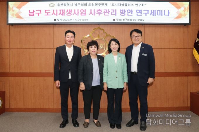 이정훈 대표의원은 “이번 연구세미나를 통해 우수 사례와 의견을 공유하며 남구 도시재생사업 사후관리 정책 방향성을 더욱 명확히 다질 수 있었다”며 “앞으로도 심도있는 연구 활동을 이어 나가며 도시가 더욱 활성화되고 주민들에게 실질적으로 도움이 되는 정책 방안을 마련하도록 노력하겠다”고 말했다.