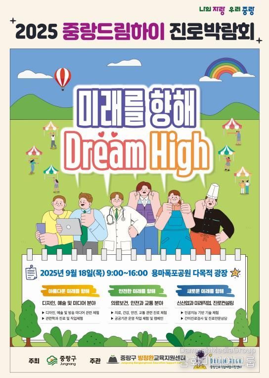 시민행정신문 이존영 기자 | 중랑구는 9월 18일 오전 9시부터 오후 4시까지 용마폭포공원 다목적광장에서 ‘2025 중랑드림하이 진로박람회’를 개최한다. 이번 행사는 중랑구가 주최하고 중랑구 방정환교육지원센터와 중랑진로직업체험지원센터가 공동 주관하며, 관내 중학생 2,000여 명과 학부모, 교원, 지역사회 관계자들이 참여한다.