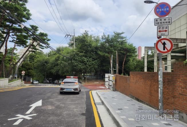 충신유치원은 승·하차 구간과 횡단보도 대기공간에 디자인 보도블럭을 설치해 학부모 차량 혼잡을 줄이고, 보광초에서 해제된 교통단속용 카메라를 이전해 실효성을 강화한다.