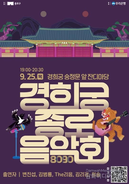 가수 변진섭과 김범룡이 ‘너에게로 또다시’, ‘바람 바람 바람’, ‘이젠 안녕’ 등 8090 세대를 아우르는 명곡을 들려준다. 경희궁의 가을 정취를 더할 ‘신사랑가’, ‘아름다운 나라’ 같은 퓨전 국악까지 더해 약 1시간 동안 장르를 넘나드는 무대가 펼쳐질 예정이다.