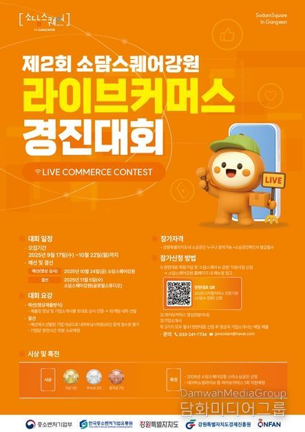 시민행정신문 이세훈 기자 | 강원특별자치도는 도내 소상공인의 온라인 마케팅 역량 강화를 위해 소상공인이 직접 참여하는 '제2회 라이브커머스 경진대회'를 개최한다고 밝혔다.