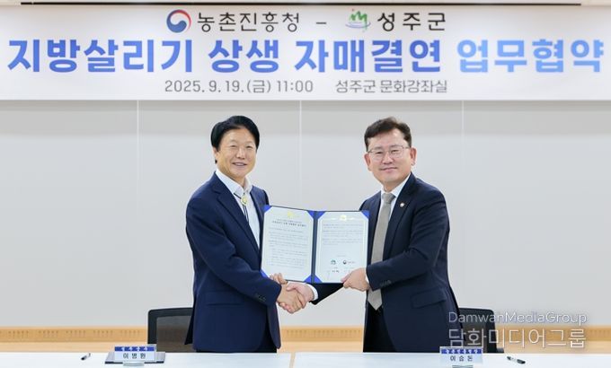 이병환 성주군수와 이승돈 농촌진흥청장은 9월 19일 오전 성주군청에서 상생발전 도모와 상호 공동협력을 위한 협약서에 서명했다.
