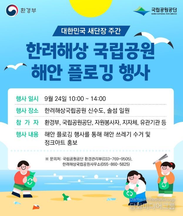 시민행정신문 김학영 기자 | 환경부 산하 국립공원공단(이사장 주대영)은 ‘대한민국 새단장’ 주간(9월 22일~10월 1일)을 맞아 국립공원 바닷가를 대상으로 쓰레기줍기(플로깅) 활동과 전 국민이 참여하는 사회관계망서비스(SNS) 인증 행사를 진행한다고 밝혔다.