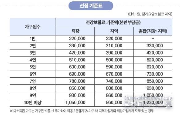 다만 가구원 합산 2024년 재산세 과세표준 합계액이 12억원을 초과하거나 2024년 귀속 금융소득 합계액이 2천만원을 넘는 경우는 제외된다.