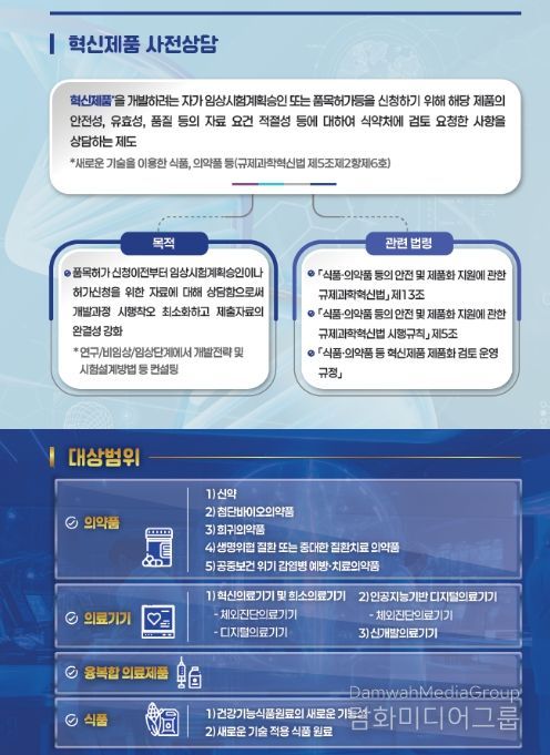 식약처는 “현장상담 외에도 신기술 또는 신개념 의료제품을 개발 중인 기업과 개발자는 혁신제품 사전상담 제도를 통해 직접 사전상담을 신청할 수 있다”며, 식약처 누리집 ‘혁신제품 사전상담’ 페이지에 공개한 절차 등을 참고 가능하다고 설명했다.